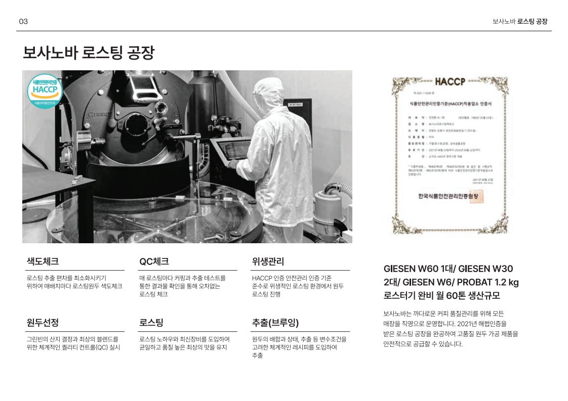 보사노바 로스팅팩토리 HACCP 인증과 현직 커피 교수님, 커피 전문가들이 함께 로스팅 팩토리에서
